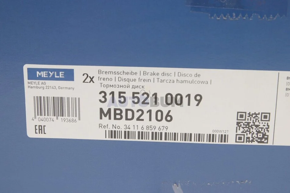 Аналоги "315 521 0019 MEYLE":