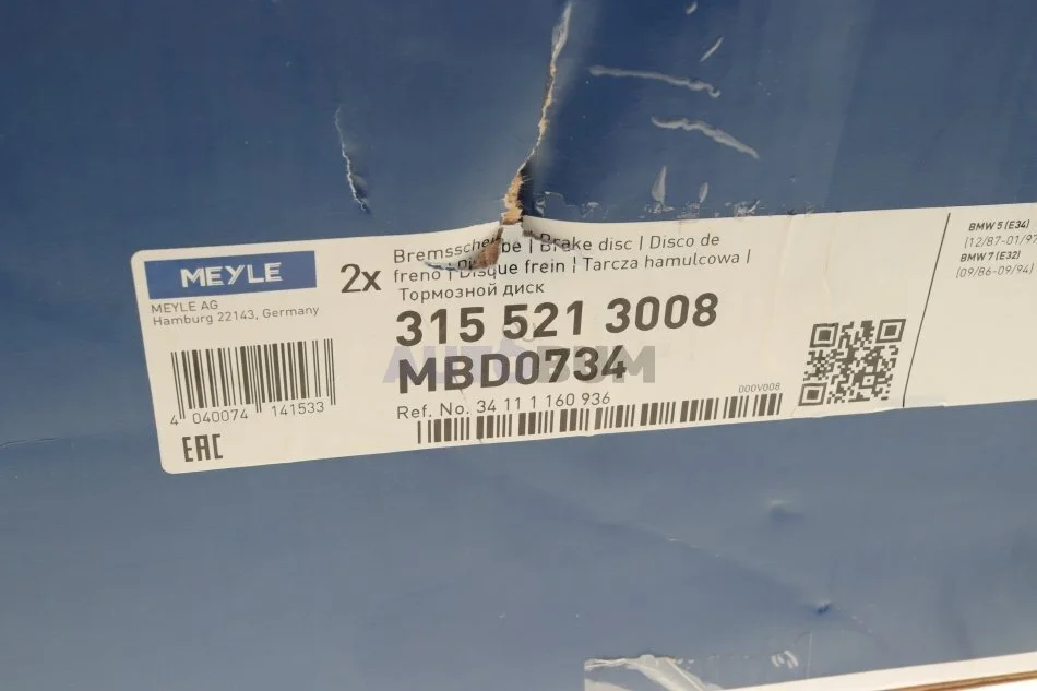 Диск гальмівний MEYLE 315 521 3008