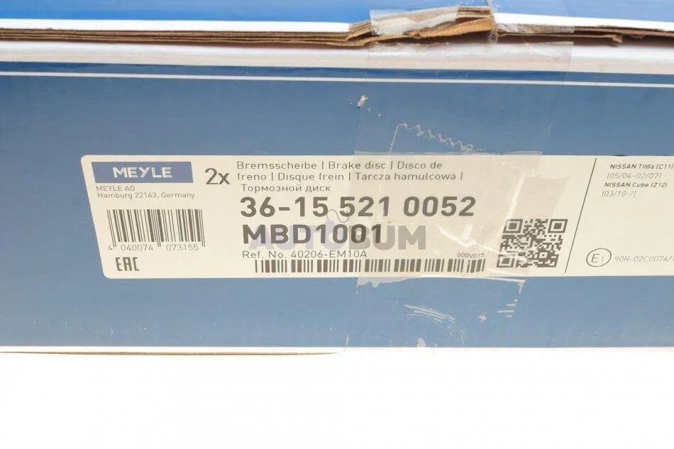 Диск гальмівний MEYLE 36-15 521 0052