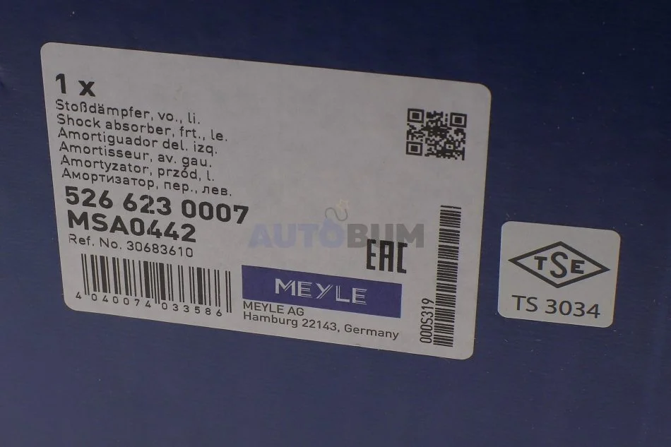 Амортизатор підвіски MEYLE 526 623 0007