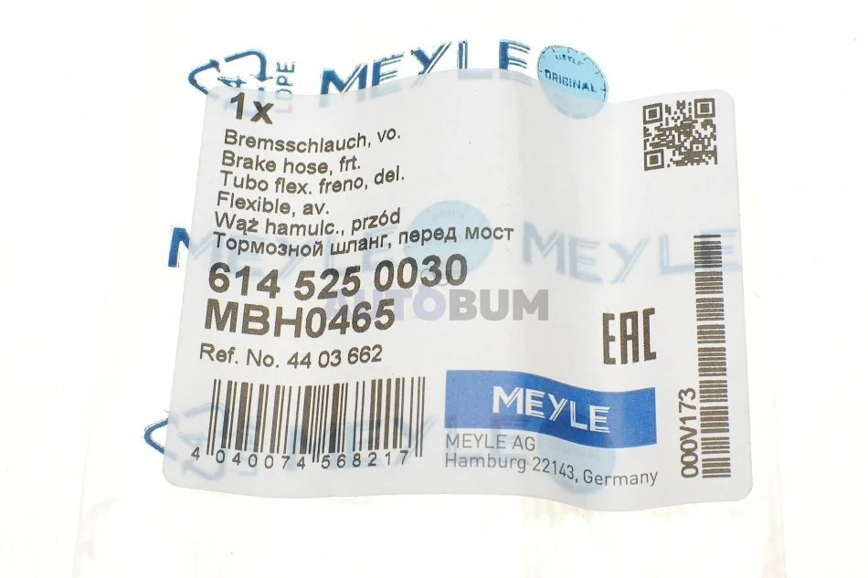 Шланг гальмівний MEYLE 614 525 0030