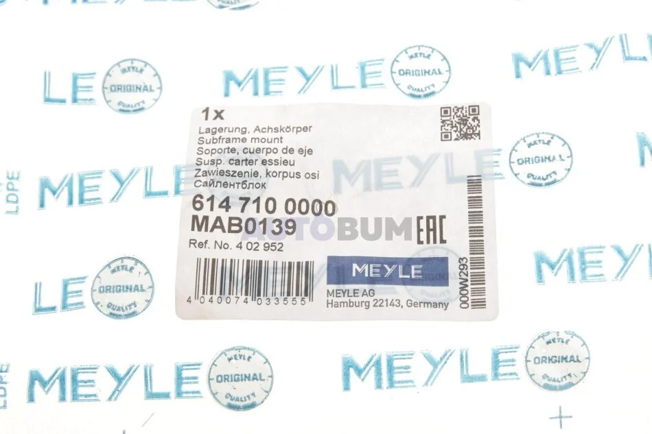 Втулка балки OPEL ASTRA H, MERIVA B, ZAFIRA B 04 зад. міст перед. MEYLE 614 710 0000