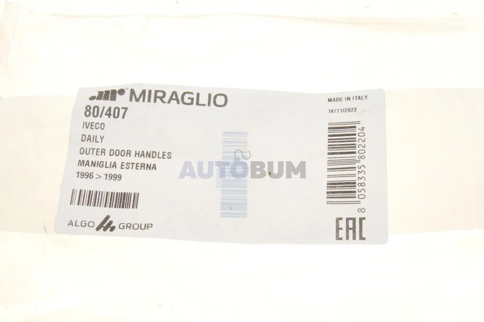 - MIRAGLIO 80/407 підходить до марок/моделей авто: