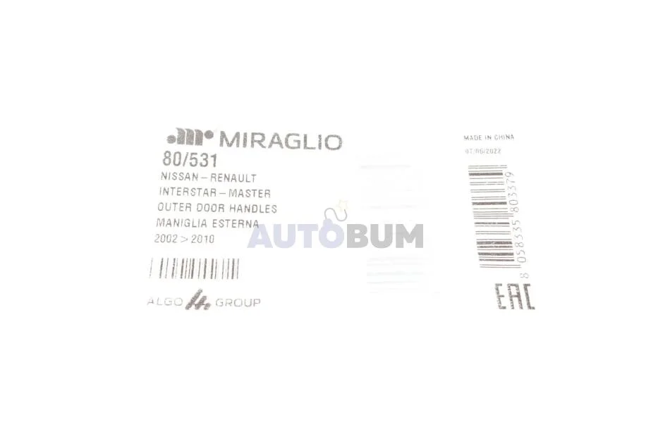 - MIRAGLIO 80/531 підходить до марок/моделей авто: