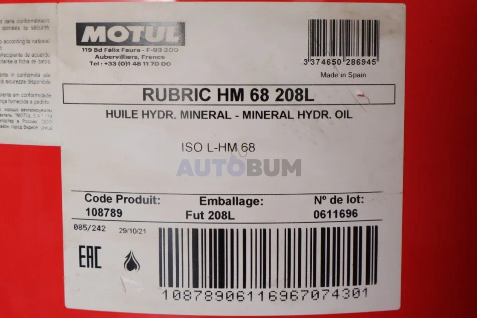 Рідина гідравлічна RUBRIC HM 68 208L MOTUL 108789