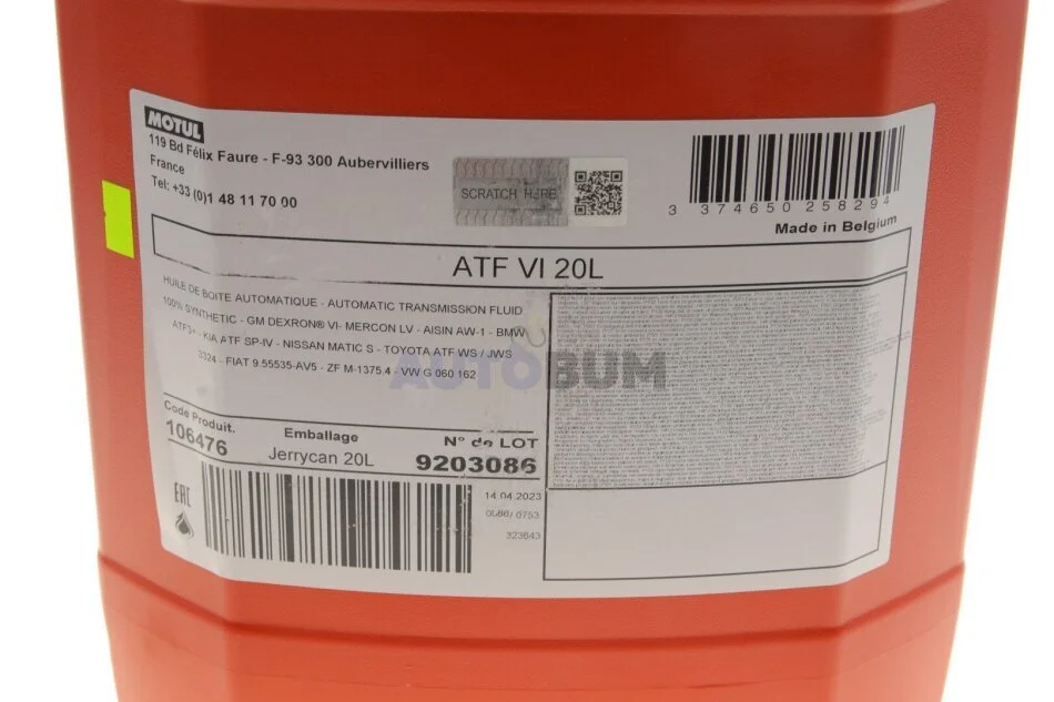 Специфікація: ATF Dexron III H, AISIN JWS 3309, AISIN JWS 3314, Allision C-4, Allision TES 295, Allision TES 389, Nissan Matic-D/J/K, Chrysler ATF+3/+4, Ford Mercon. MerconV, Ford WSS-M2C924-A, Ford WSS-M2C938-A, Ford M2C195-A, Ford M2C202-B, Ford M2C922-A1, MAN 339 Type V1/Z2, MAN 339 Type V2/Z3, MB 235.71, MB 236.6, MB 236.9, MB 236.10, MB 236.11, VW G 050 160, VW G 052 162, VW G 052 990, VW G 055 025, ZF TE-ML 04D. 14B, ZF TE-ML 17C. 02F, ZF TE-ML 11B. 14C, BMW LA-2634, BMW LT-71141, BMW ETL 7045 E
