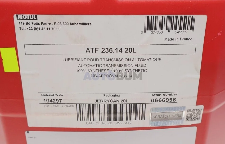 Специфікація: ATF4134, MB 236.14, ATF III H plus