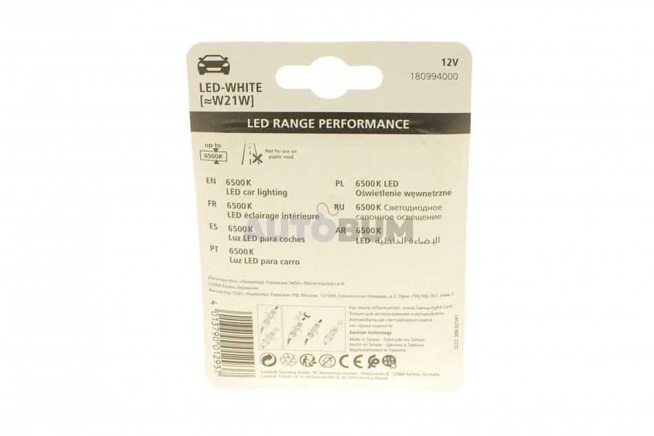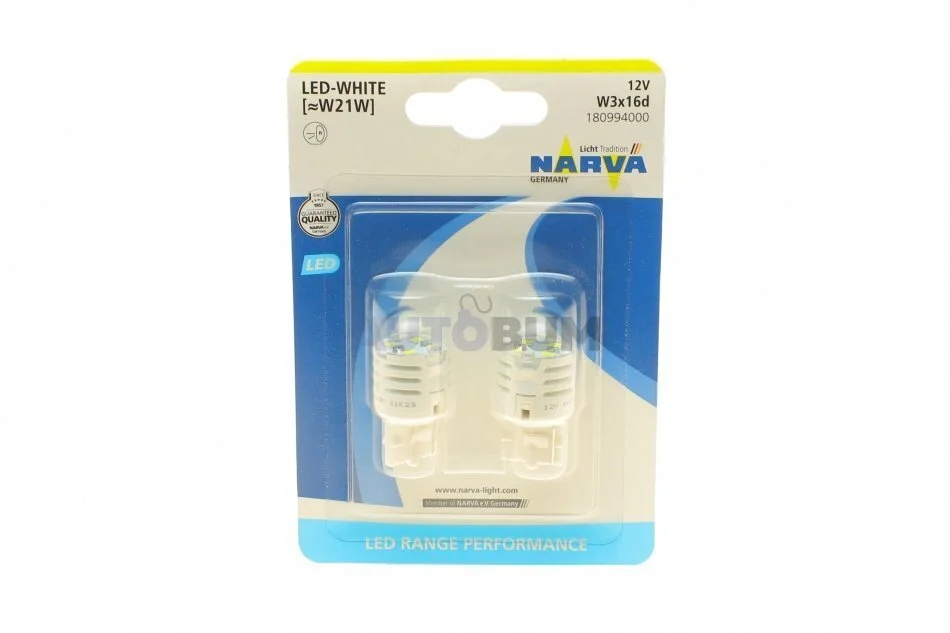 Автолампа W21W 12V 21W W3x16d (LED) (біла) (к-кт 2шт) NARVA 180994000