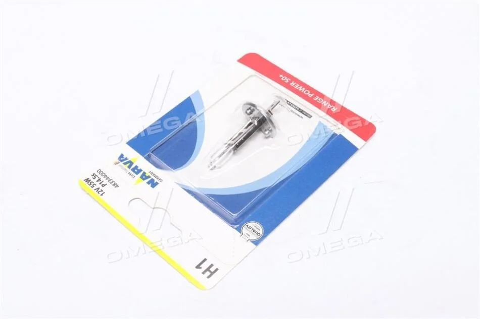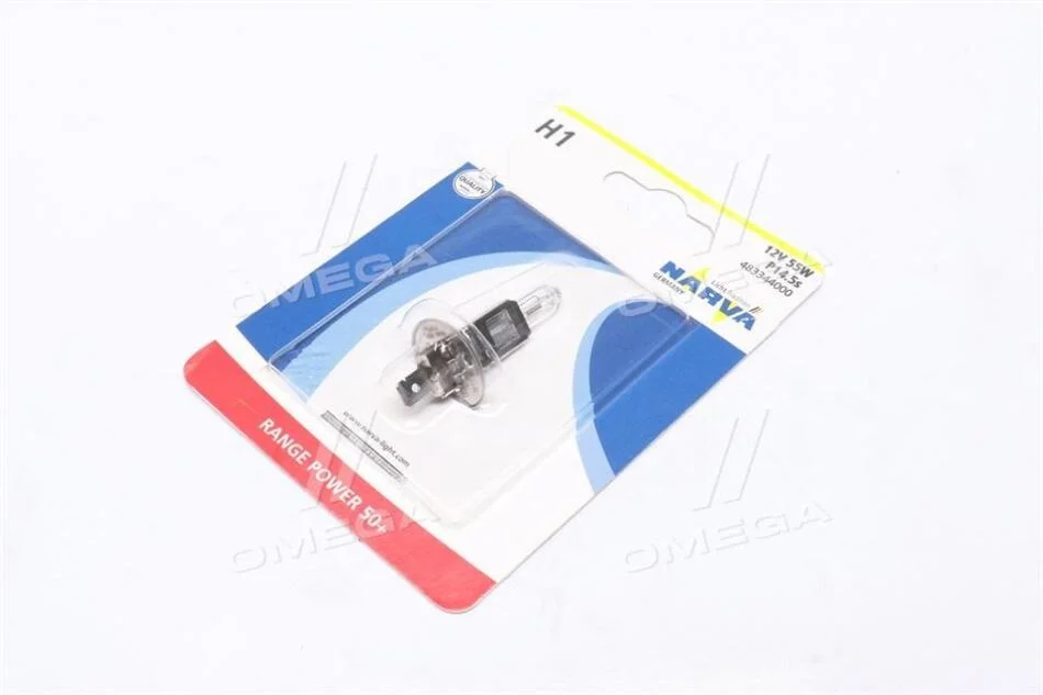 Лампа розжарювання H1 12V 55W P14,5S RANGE POWER +50 (Blister 1шт) NARVA 48334B1