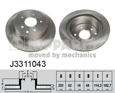 Диск гальмівний задн Nissan Juke, Leaf, Qashqai I, Rogue, X-Trail Renault Koleos 1.5D-Electric 06.01- NIPPARTS J3311043
