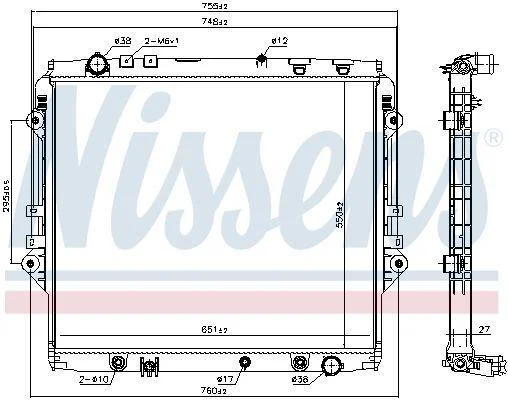 TOYOTA Радіатор системи охолодження двигуна FORTUNER 2.8 D 15-, HILUX VIII 2.4, 2.8 D 15- NISSENS 606068