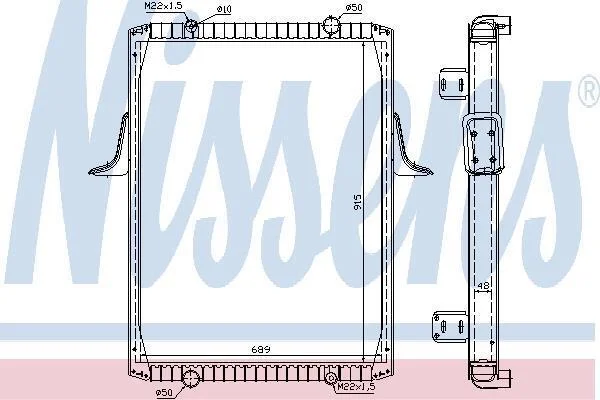Радіатор охолоджування / РАДИАТОР В СБОРЕ С РАМОЙ RVI PREMIUM 340/385 915X689X48 NISSENS 63821A