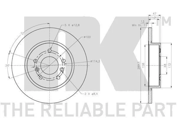 Диск гальмівний зад. NISSAN QASHQAI 13- RENAULT KADJAR 15- 290X13 NK 202291