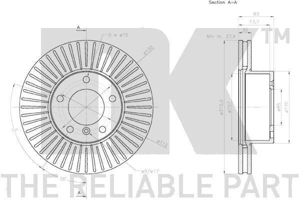 Зовнішній діаметр [мм]: 315