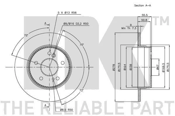 Товщина гальмівного диску (мм): 9