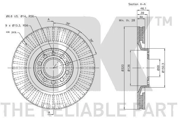 Диск гальмівний передній Audi A4 B5, A4 B6, A4 B7, A4 B8, A6 C5, ALLROAD C5 SEAT EXEO, EXEO ST 1.8-4.2 04.95-12.15 NK 2047107