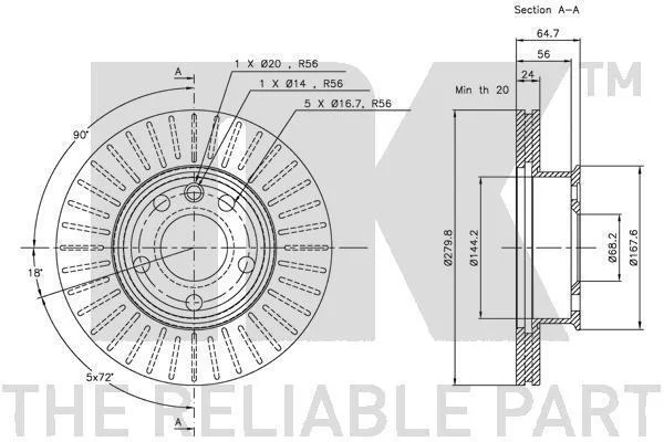Диск гальмівний перед. вентильований VW T4 91- NK 204733