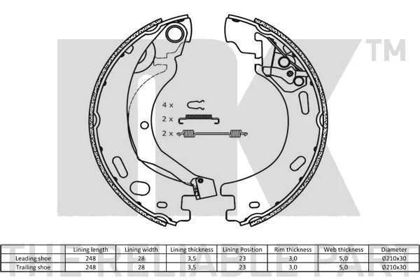 Комплект тормозных колодок, стояночная тормозная система NK 2712769