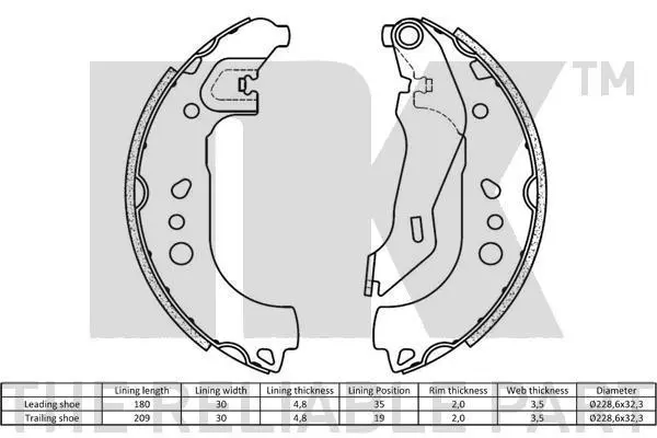 Колодки гальмівні барабанні, комплект NK 2723859