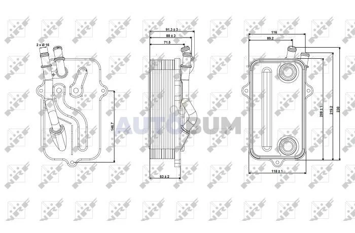 Розміри радіатора: 208 x 118 x 63