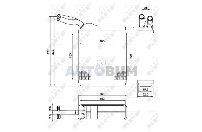 Розміри радіатора: 155x142