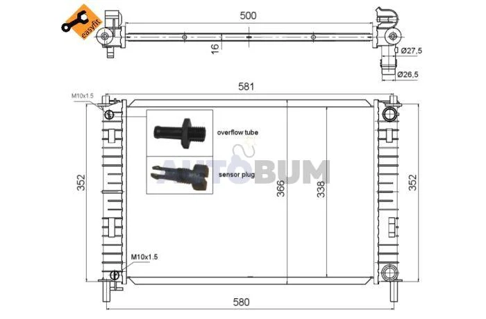 Розміри радіатора: 499 X 349 X 22