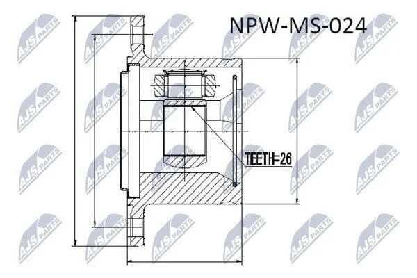 ШАРНІР РІВНИХ КУТОВИХ ШВИДКОСТЕЙ | MITSUBISHI PAJERO V14W-V55W 91-04, PAJERO SPORT K94W/K99W 96-06, SPACE /ПРАВ/ NTY NPW-MS-024