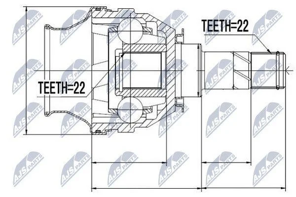 Внутрішнє зубчасте з'єднання з боку колеса: 22