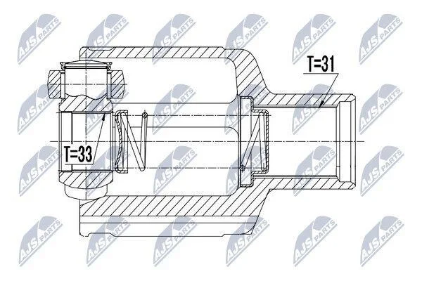Внутрішнє зубчасте з'єднання з боку диференціалу: 33