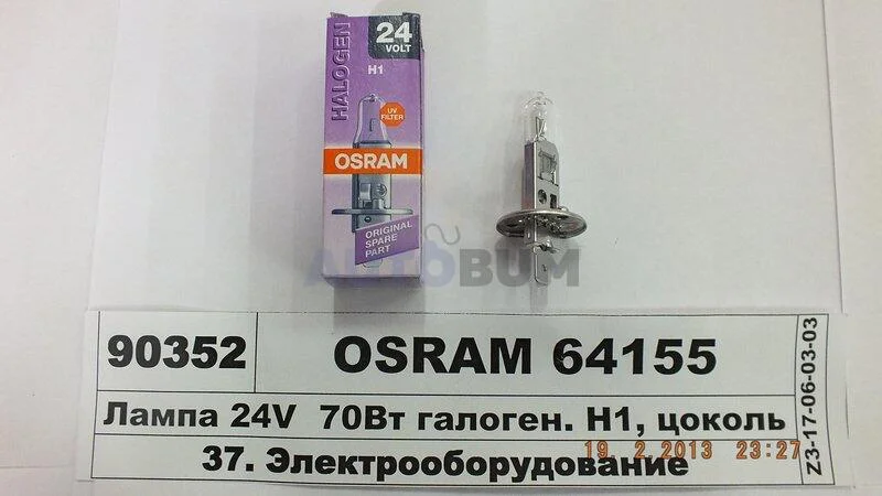H1 24V 70W автолампа DAF, IRISBUS, IVECO, MAN, DB, NEOPLAN, RENAULT TRUCKS, SCANIA, SETRA, VOLVO OSRAM 64155
