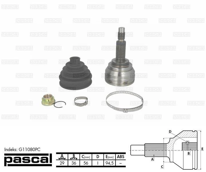 Шарнір приводного валу зовнішній Лів/Прав (29z/36z/56мм ABS:44) NISSAN MURANO I, MURANO II, QASHQAI I, X-TRAIL, X-TRAIL II RENAULT KOLEOS I 1.6D/2.0D/3.5 08.03- PASCAL G11080PC