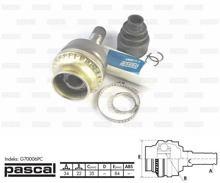 Шарнір приводного валу внутрішній Лів/Прав (34z/22z/35мм) DAEWOO CIELO, KALOS, LANOS, NEXIA OPEL ASTRA F, ASTRA F CLASSIC 1.3-1.6 09.91- PASCAL G70006PC