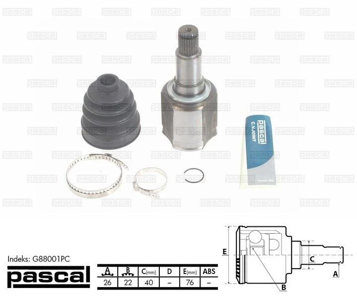 Шарнір приводного валу внутрішній Прав (26z/22z/40мм) SUZUKI GRAND VITARA II 1.6-3.2 04.05- PASCAL G88001PC