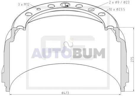 Барабан гальмівний / SCANIA 413 / T-213 / В-275 / D-335 / D-295 / 54 КГ, НЕ ПОСТАВЛЯ PE AUTOMOTIVE 126.074-00