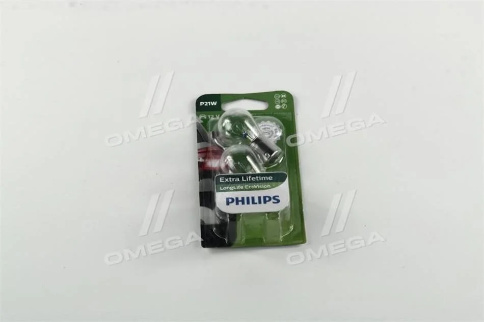 Лампа розжарювання P21W 12V 21W BA15s LongerLife EcoVision 2шт blister PHILIPS 12498LLECOB2