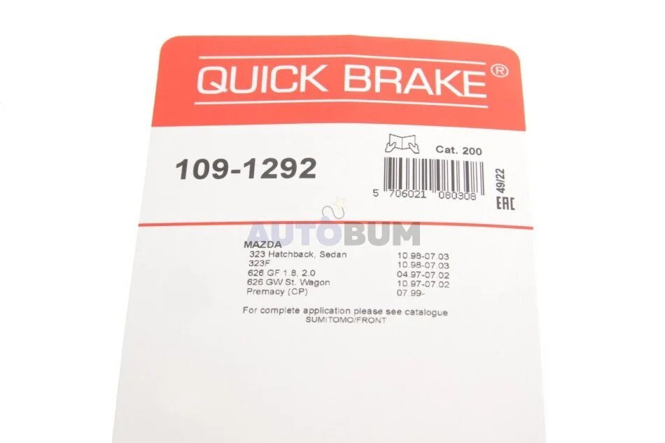 - QUICK BRAKE 109-1292 підходить до марок/моделей авто: