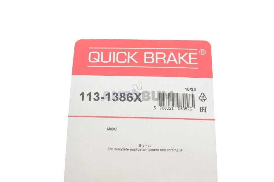 Ремкомплект гальмівного супорта VW Crafter 06-16, FIAT Ducato 06-14, Ducato 14-, MERCEDES-BENZ Sprinter 906 06-18, Vito W639 03-10, PEUGEOT Boxer 06-14, Boxer 14-, CITROEN Jumper 02-06, Jumper 06-14, IVECO Daily E4 06-11, Daily E3 99-06 QUICK BRAKE 113-1386X