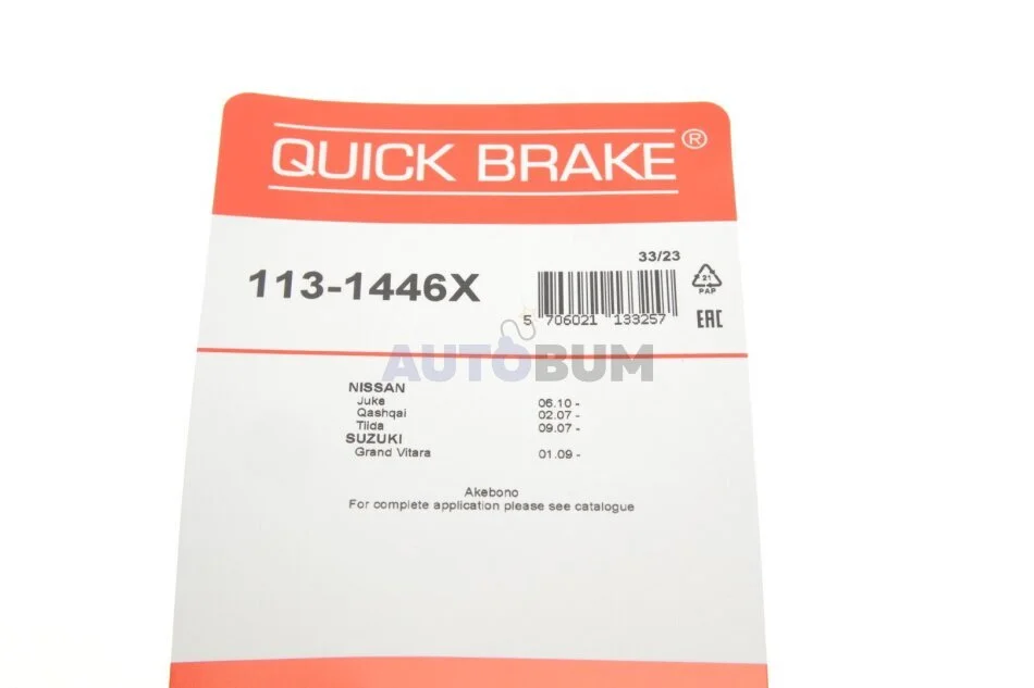 Ремкомплект гальмівного супорта задн/передн Лів/Прав CITROEN C4 GRAND PICASSO I NISSAN CUBE, JUKE, LEAF, MURANO I, MURANO II, NV200, NV200 / EVALIA, PULSAR, QASHQAI I, TIIDA 1.2-Electric 06.01- QUICK BRAKE 113-1446X
