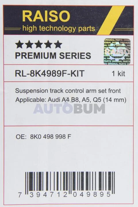 К-кт важелів підвіски перед. Audi A4 B8/A5/A6 C7/Q5 (з тонким пальцем, конус 14мм) RAISO RL-8K4989F-KIT