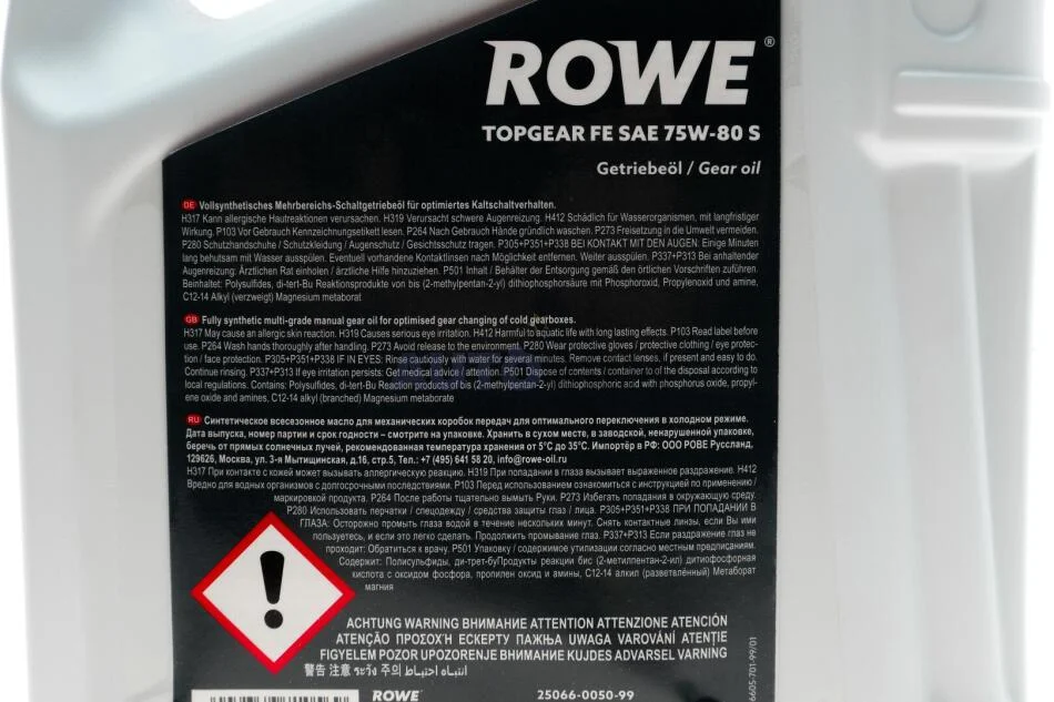 Олива трансмісійна HIGHTEC TOPGEAR FE SAE 75W-80 S (5 L) ROWE 25066-0050-99