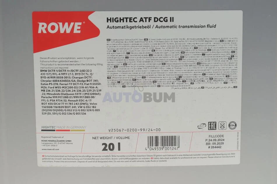 Олива трансмісійна HIGHTEC ATF DCG II (20 L) ROWE 25067-0200-99