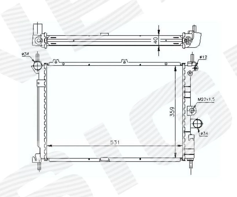 Розміри радіатора: 532 - 360 - 42