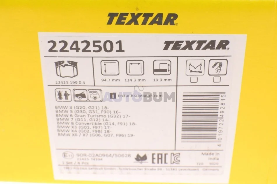 - TEXTAR 2242501 підходить до марок/моделей авто: