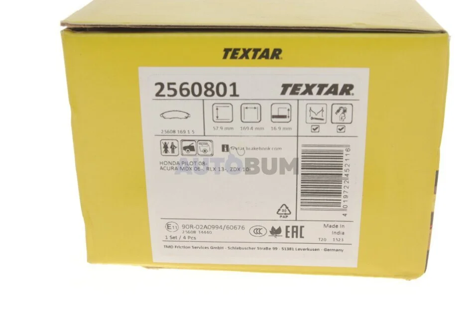 - TEXTAR 2560801 підходить до марок/моделей авто:
