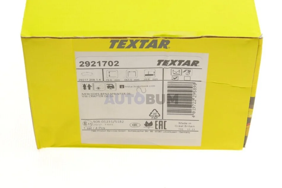 - TEXTAR 2921702 підходить до марок/моделей авто:
