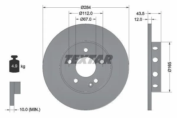 Диск тормозной перед. DB W202 93-00 (284*12) TEXTAR 92059303