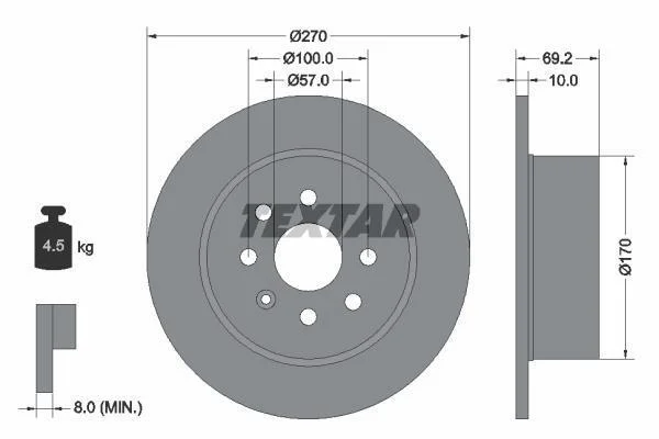 OPEL Диск тормозной задний VECTRA 95- 270 10 8 TEXTAR 92075503