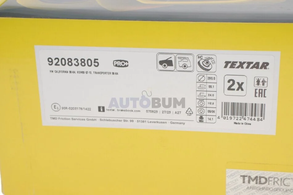 - TEXTAR 92083805 підходить до марок/моделей авто: