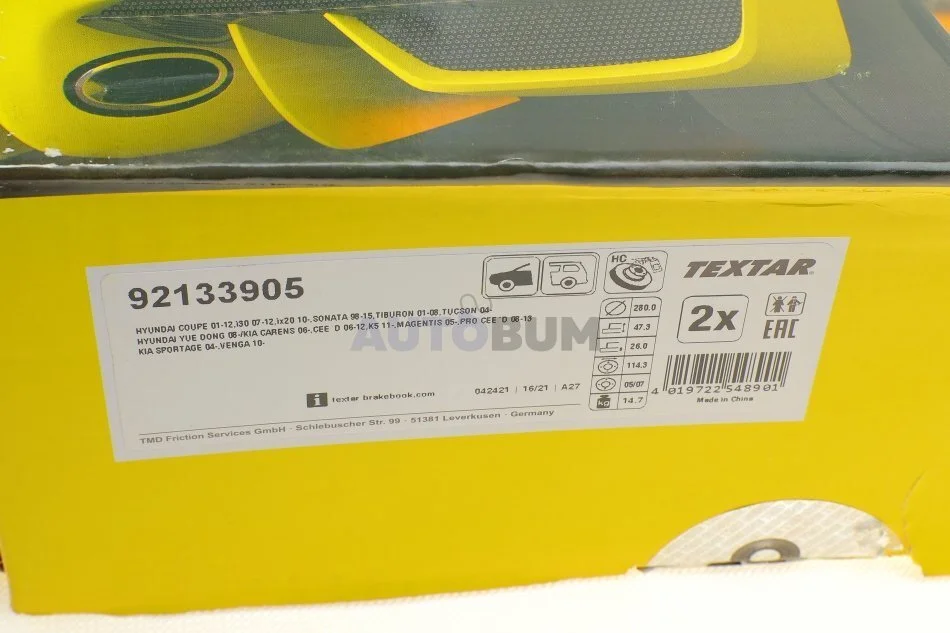 - TEXTAR 92133905 підходить до марок/моделей авто:
