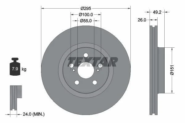 Диск тормозной TOYOTA AVENSIS 03- перед.вент. (с покрытием PRO) TEXTAR 92135603